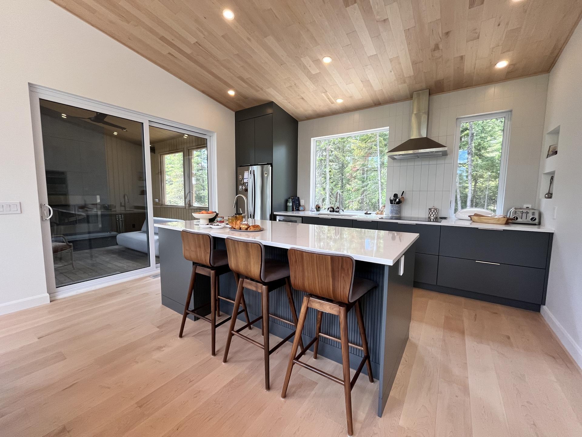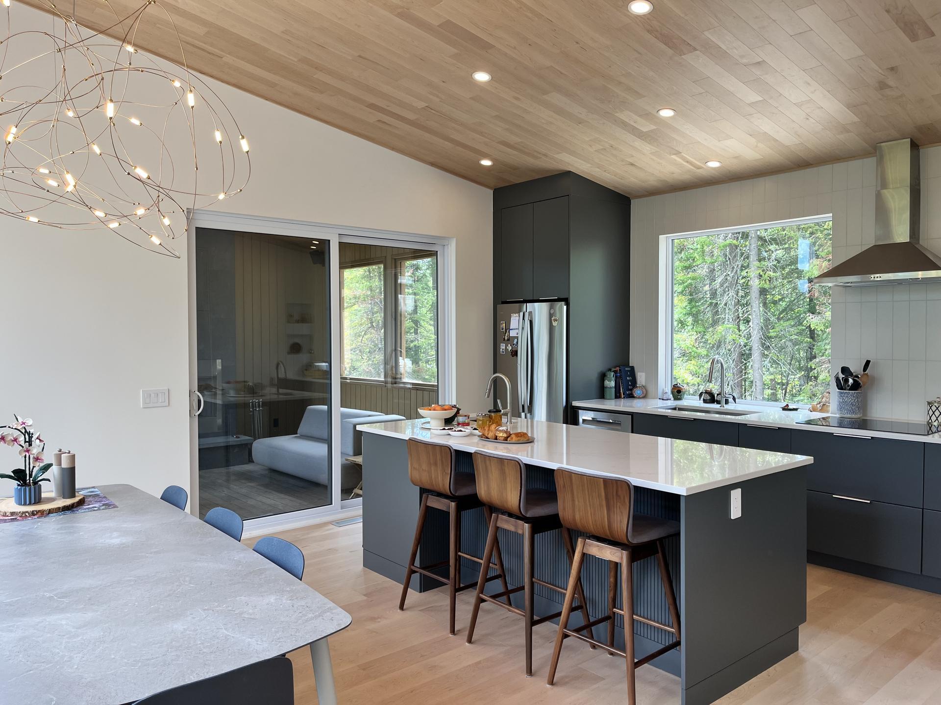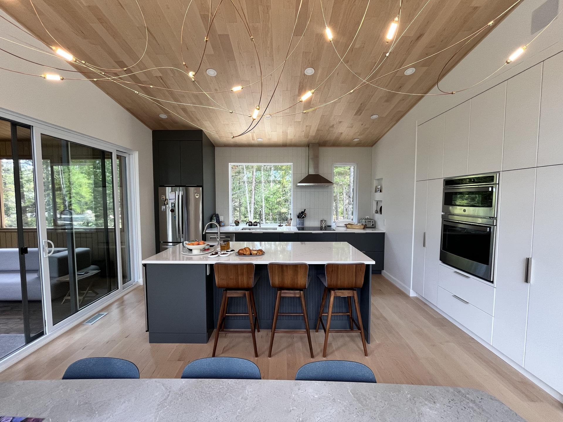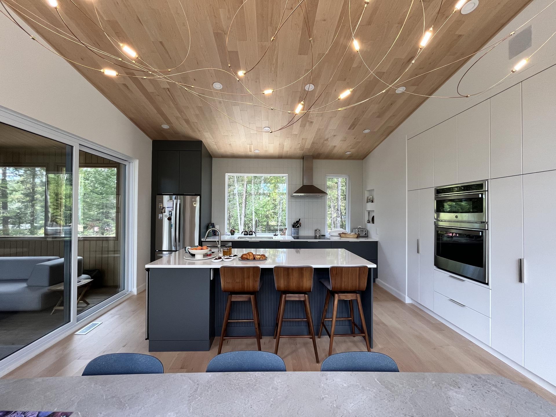 Nichée entre modernité et nature, la Cuisine Épure Boréale incarne l'élégance contemporaine dans un cadre chaleureux. Avec son plafond en bois naturel, ses lignes épurées et ses matériaux haut de gamme, elle offre un espace de vie à la fois fonctionnel et inspirant.