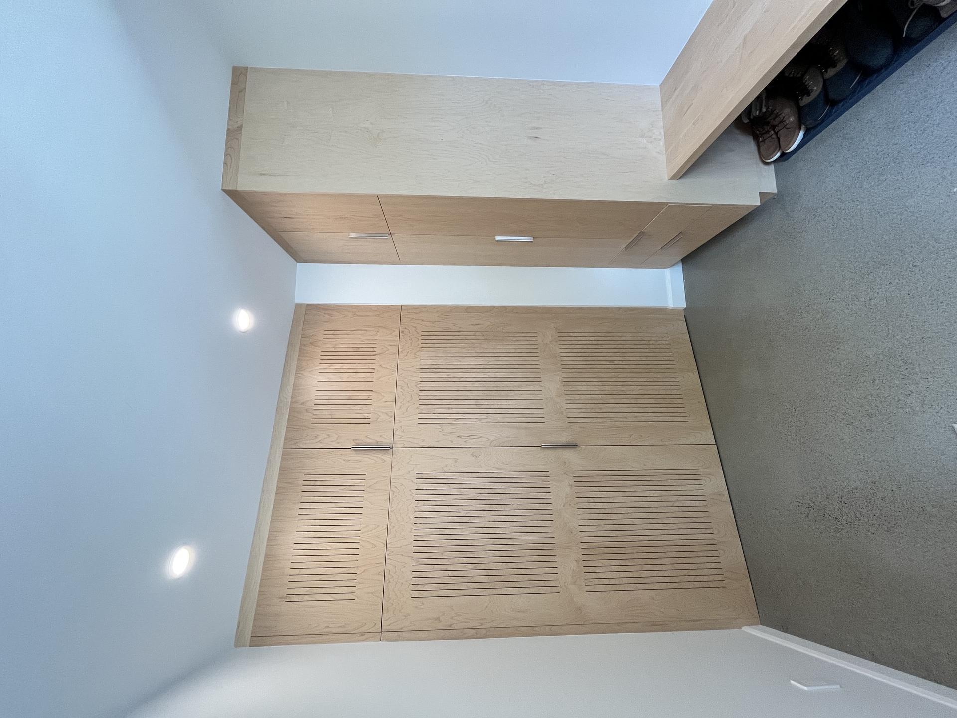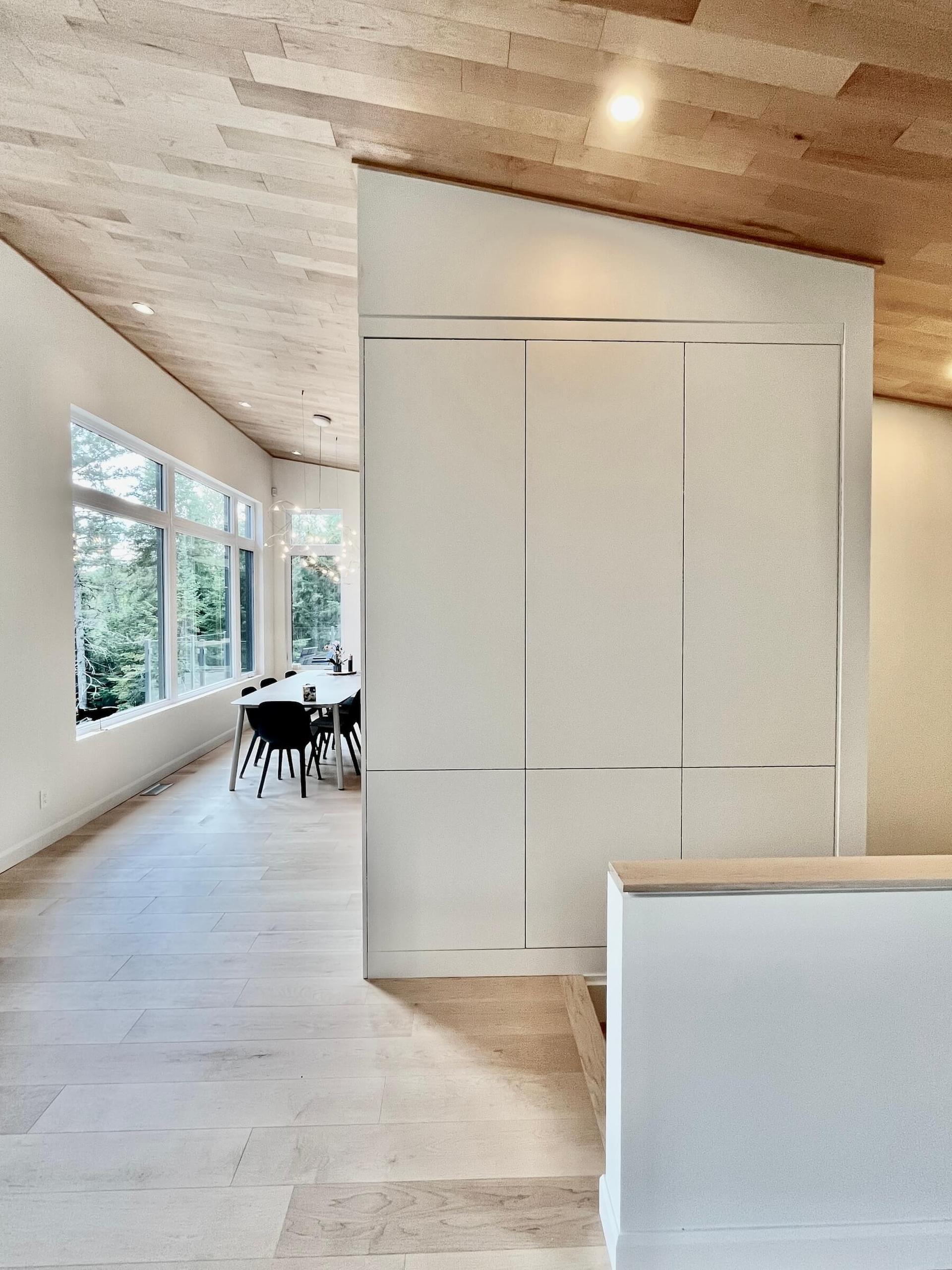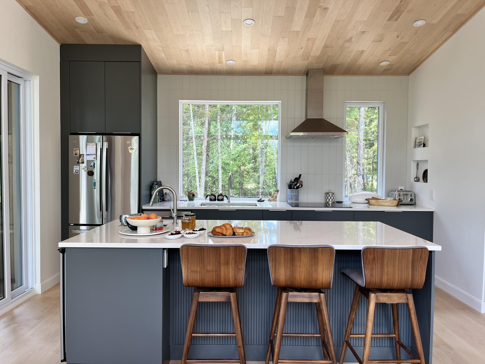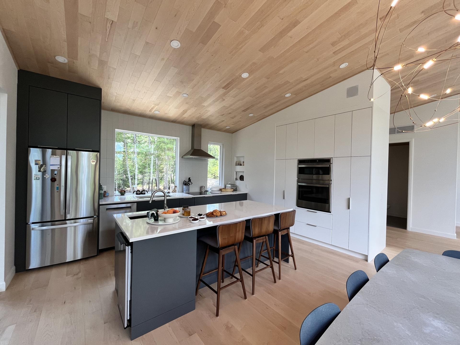 Nichée entre modernité et nature, la Cuisine Épure Boréale incarne l'élégance contemporaine dans un cadre chaleureux. Avec son plafond en bois naturel, ses lignes épurées et ses matériaux haut de gamme, elle offre un espace de vie à la fois fonctionnel et inspirant.